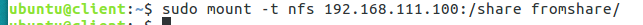 바로 nfs에 마운트 해주는 "mount -t nfs 서버아이피:/공유디렉터리 마운트할디렉터리" 명령을 관리자 권한으로 실행합니다.