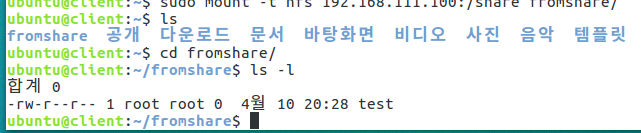 이제 서버가 잘구축되어 share 디렉터리에 마운트가 가능한지 확인해 보겠습니다.