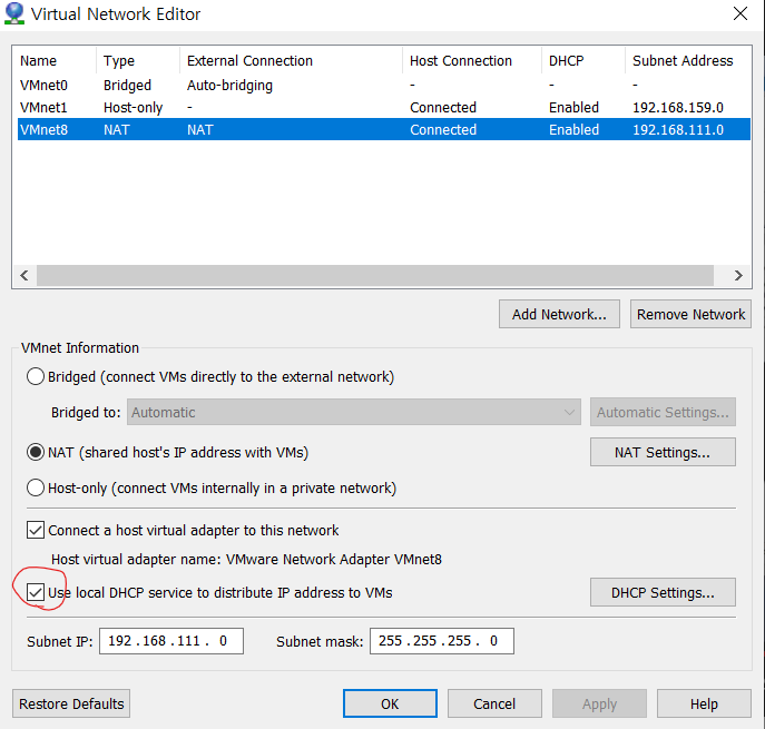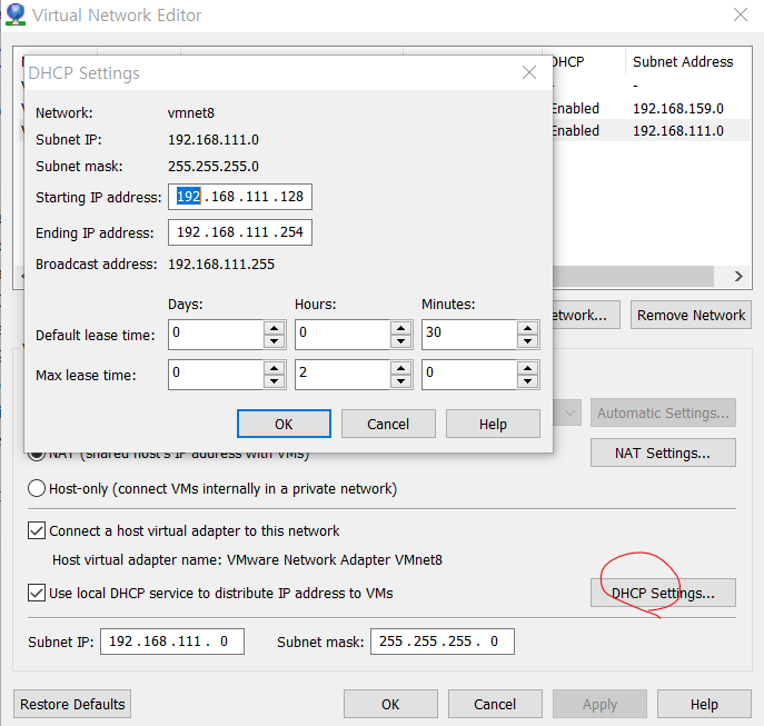 구축에 앞서 제가 사용하고있는 가상머신인 vmware worstation pro는 자체적으로 DHCP서버를 제공하고 있기때문에 이를 먼저 꺼두고 구축을 시작해야 합니다.