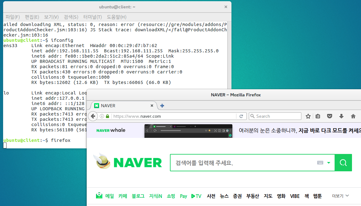 확인해보면 아이피를 잘 할당 받아 사용하고 있는것을 볼수 있습니다.