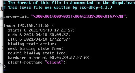 다음은 아이피를 빌려간 로그를 저장하는 파일이있습니다.